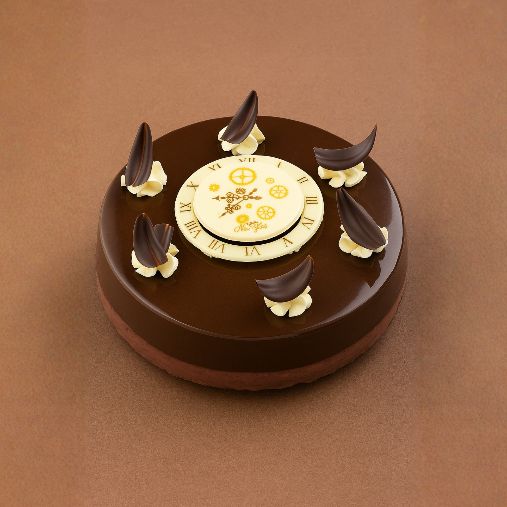 Retrouvez notre gamme de buche en dessert décoré avec notre horloge en chocolat